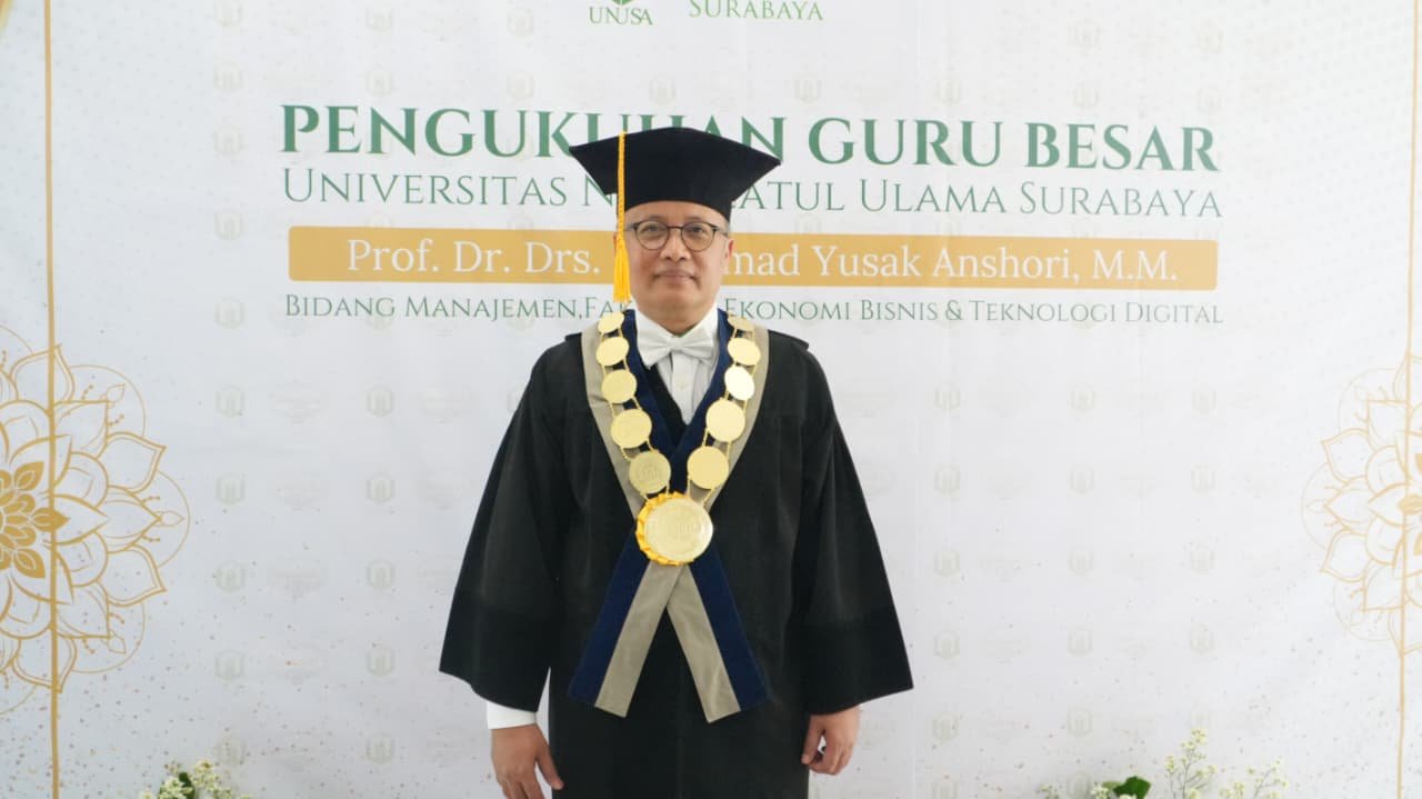 SURABAYA – Universitas Nahdlatul Ulama Surabaya (Unusa) kembali memperkuat reputasi akademiknya dengan mengukuhkan Mohamad Yusak Anshori, Drs., M.M., CPM (Asia) sebagai Guru Besar bidang Ilmu Manajemen. Pengukuhan yang berlangsung di Auditorium Unusa, Sabtu (14/2), tidak hanya menjadi seremoni akademik, tetapi juga momentum lahirnya gagasan baru bertajuk Softbrain Engineer.