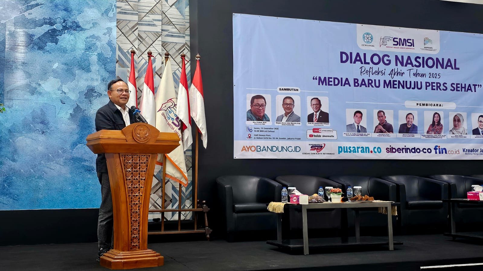 Pernyataan tersebut disampaikan Prof. Komaruddin saat menghadiri Dialog Nasional yang digelar Pengurus Pusat Serikat Media Siber Indonesia (SMSI) bertema “Media Baru Menuju Pers Sehat” di Hall Dewan Pers, Gambir, Jakarta Pusat, Senin (15/12/2025).