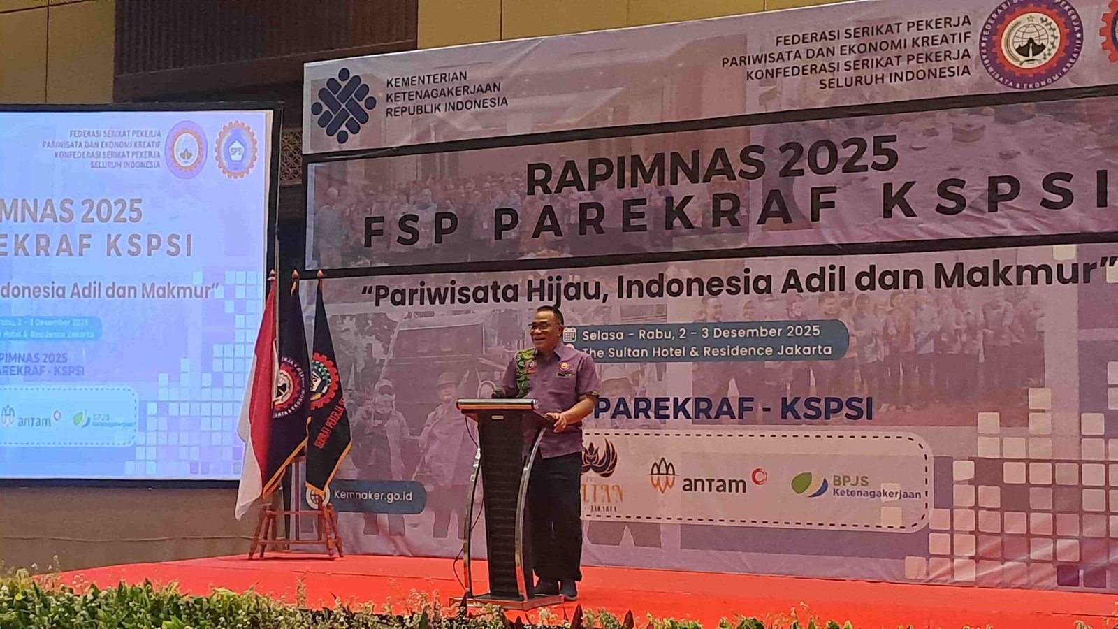 Rapimnas Parekraf 2025 dihadiri Ketua Umum Konfederasi Serikat Pekerja Seluruh Indonesia (KSPSI) Moh Jumhur Hidayat dan pembukaan oleh Menaker Yassierli serta Para Ketua Federasi Buruh yang tergabung di bawah KSPSI.