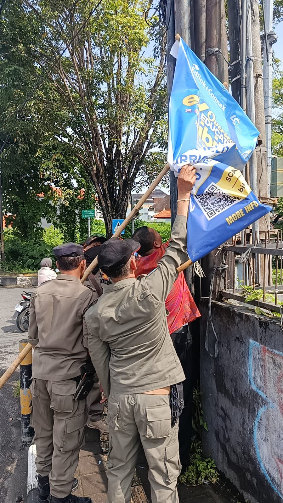 Bidang Ketertiban Umum dan Ketenteraman Masyarakat (KUKM) Satuan Polisi Pamong Praja (Satpol PP) Kota Denpasar melaksanakan kegiatan penertiban baliho, spanduk, banner, umbul-umbul, dan pamflet yang terpasang tidak sesuai ketentuan di fasilitas umum Selasa (13/1).